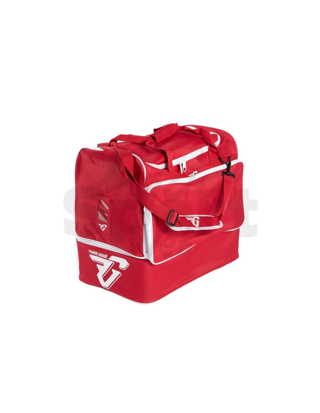 Il logo FG ricamato bianco sul frontale e la scritta "FRANKIE GARAGE" sul lato completano una borsa che fa riconoscere la squadra in spogliatoio, in trasferta e fuori dal campo.