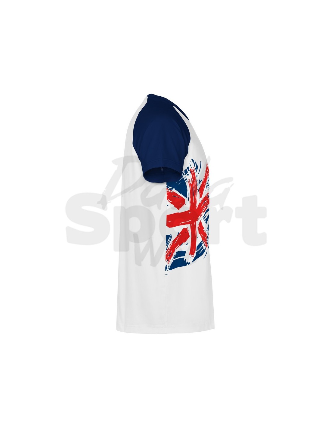 T-shirt tecnica Roly Forza Inghilterra in 100% poliestere 190 g/m con effetto cotone. Corpo bianco con maniche raglan a contrasto e stampa in sublimazione a pennellate dinamiche nei colori della nazione. Girocollo in tinta con le maniche, scollo nastrato. Personalizzabile con nome, numero e logo. Perfetta per tornei, tifo e gare di calcio e calcetto. Disponibile nelle varianti: Spagna, Francia, Italia, Portogallo, Germania.