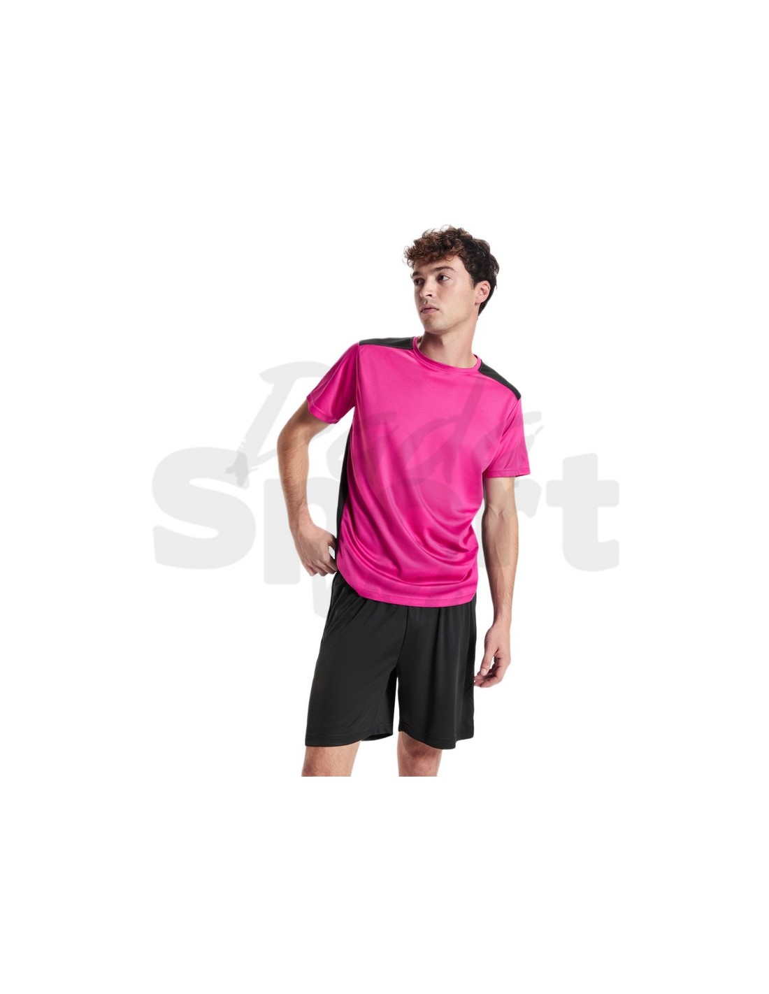 Completo sportivo unisex Roly Detroit vari colori.Maglia tecnica bicolore in mesh traforato con pannello nero sulla spalla e fianco, cuciture overlock nere a contrasto, girocollo nastrato. Pantaloncino Player elasticizzato con cordoncino e spacci laterali. Leggero, traspirante, ad alto impatto visivo.