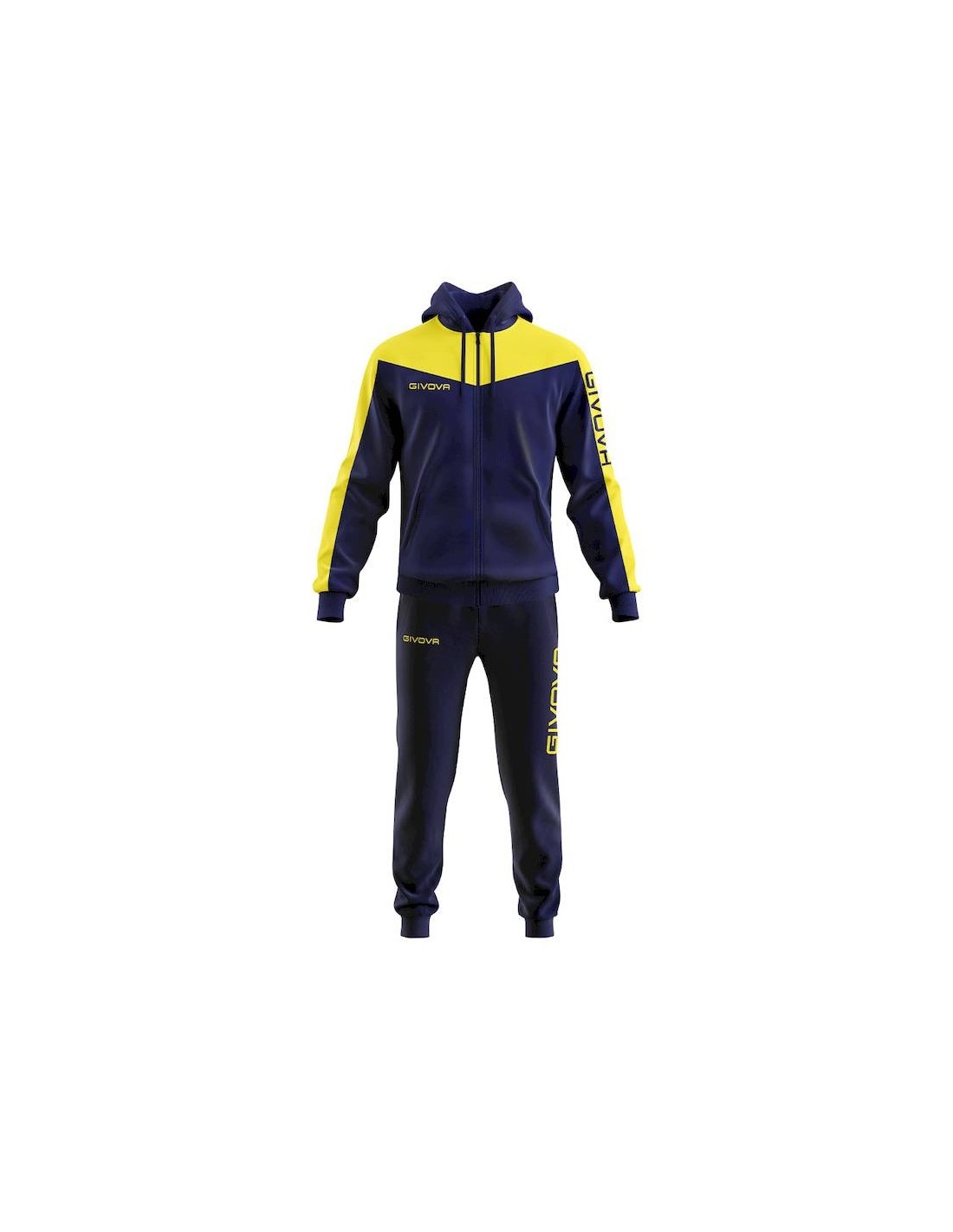 Romacon cappuccio è la nuova tuta uomo sportiva della Givova, la giacca ha la chiusura full zip, loghi ricamati, tasche laterali, polsini in costina, fondo giacca in costina, pantaloni con loghi ricamati, tasche laterali, fondo pantalone in costina, zip nel fondo del pantalone.