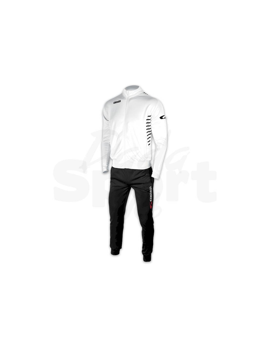 Realizzata in poliestere liscio, zip intera, colletto alto, bande elastiche in prossimità dei polsini, in vita e alle caviglie, decorazioni su spalle e fianchi, vari loghi G e G GEMS ricamati.